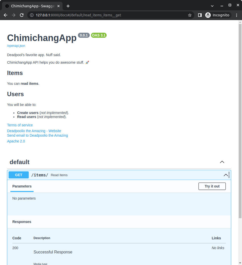 ChimichangApp API helps you do awesome stuff. 🚀